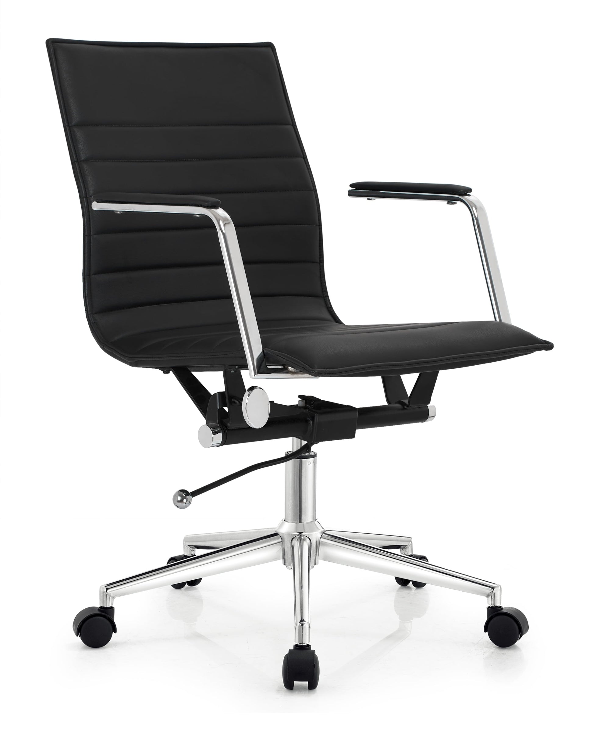 2xhome Mid Century Office Chair With Arms Wheels Modern Black Desk Chair Ergonomic Mid back PU Leather Arm Rest Tilt Adjustable Height Swivel Task
