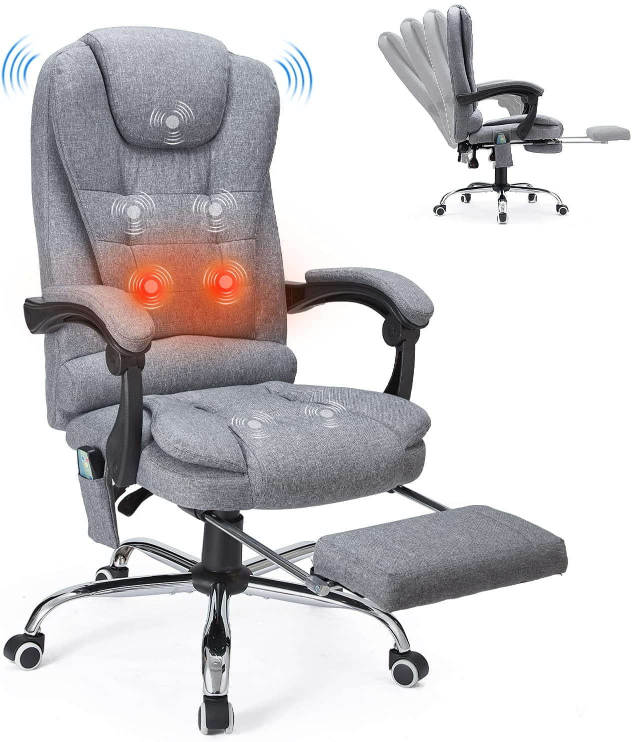 YODOLLA High Back Fabric Massage Office Chair Adjustable Heated Executive Computer Chair with Retractable Footrest, Gray